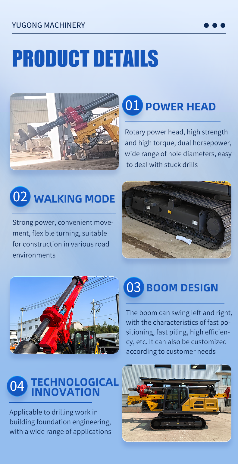 To cater to different project requirements, we offer a variety of rotary drilling rig options, including small rotary drilling rigs and 20m rotary drilling rigswith varying capacities. Our rotary drilling rig machine is engineered to deliver optimal performance, regardless of the terrain or depth.